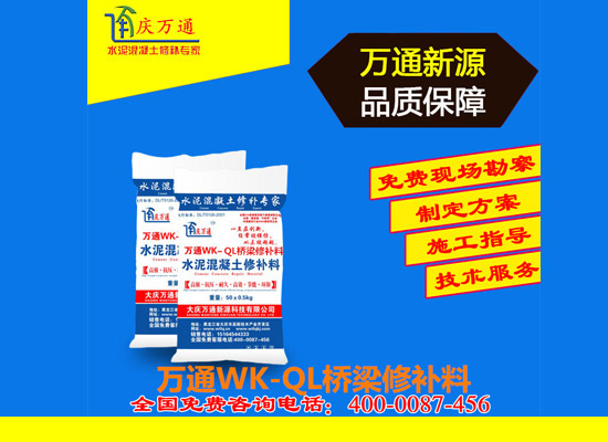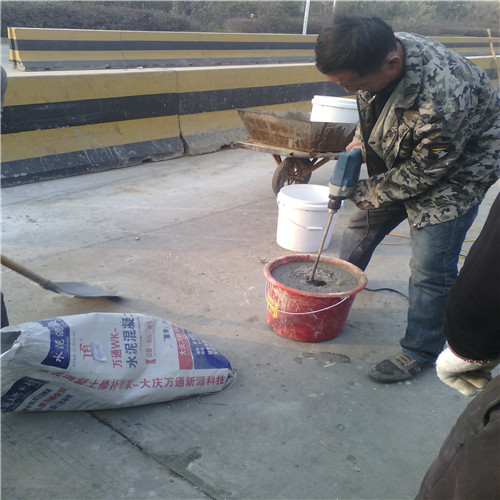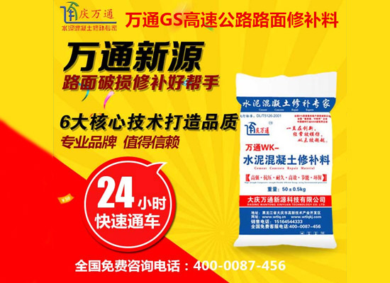 大慶萬(wàn)通新源科技有限公司獨(dú)有的混凝土路面高強(qiáng)速補(bǔ)料,是水泥混凝土路面病害修復(fù)的好材料。疲勞、凍融循環(huán)、彎曲壓力、滲水和基層破壞等原因都會(huì)引起水泥路面的破損,從而帶來(lái)高昂的維護(hù)費(fèi)用。與以往的剛性修補(bǔ)方法不同,混凝土水泥路面維修速補(bǔ)膠提供了一種獨(dú)特的柔性修補(bǔ)產(chǎn)品和技術(shù),高柔性、高抗拉性,可跨伸縮縫施工和高抗壓性使得混凝土快補(bǔ)產(chǎn)品為水泥混凝土路面提供了******性的修補(bǔ)。傳統(tǒng)的剛性修補(bǔ)方案,如環(huán)氧砂漿和快干水泥產(chǎn)品,由于其自身的粘結(jié)失效,抗疲勞性低以及與原路面不同的伸縮系數(shù),修補(bǔ)面會(huì)在短時(shí)間內(nèi)失效或產(chǎn)生新的裂縫,需要反復(fù)修補(bǔ),有效期短且費(fèi)用高昂。大慶萬(wàn)通新源科技有限公司的混凝土水泥路面維修速補(bǔ)膠可以隨原路面一起伸縮,移動(dòng),從而避免了粘結(jié)失效和產(chǎn)生新裂縫。萬(wàn)通快補(bǔ)產(chǎn)品優(yōu)異的粘結(jié)性、柔韌性和高防滑性,特別適用于水泥路面的淺層粘合修補(bǔ),多邊角混凝土板層修補(bǔ),跨伸縮縫修補(bǔ)以及路面沉陷修補(bǔ)。萬(wàn)通混凝土病害修補(bǔ)料針對(duì)混凝土起皮起沙、斷板裂縫、蜂窩麻面、坑槽露石子、漏筋掉皮、橋梁的掉皮漏筋快速通車使用時(shí)間長(zhǎng)。應(yīng)用萬(wàn)通快補(bǔ)產(chǎn)品,施工后一天就可以恢復(fù)交通。大慶萬(wàn)通新源科技有限公司的萬(wàn)通水泥路面維修速補(bǔ)膠適用于高速公路、機(jī)場(chǎng)路面、農(nóng)村村村通路面、廠坪、學(xué)校操場(chǎng)、市區(qū)公路、小區(qū)路面、橋梁、水泥路面的修補(bǔ)。使用萬(wàn)通特快補(bǔ)材料修補(bǔ)路面可以一勞永逸! 水泥地面起砂怎么辦,混凝土修補(bǔ)劑混凝土地面起砂,混凝土地面修補(bǔ),地面起砂怎么辦,